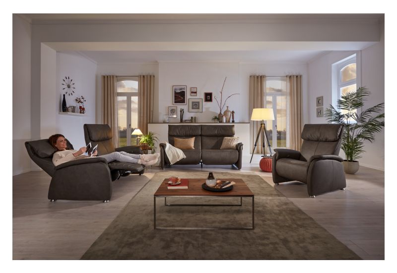 Bezug Longlife 24 black, Alufüße, Sitzkomfort superlastic soft, Rücken mit Gasdruckfeder,manuelle Comfortfkt.