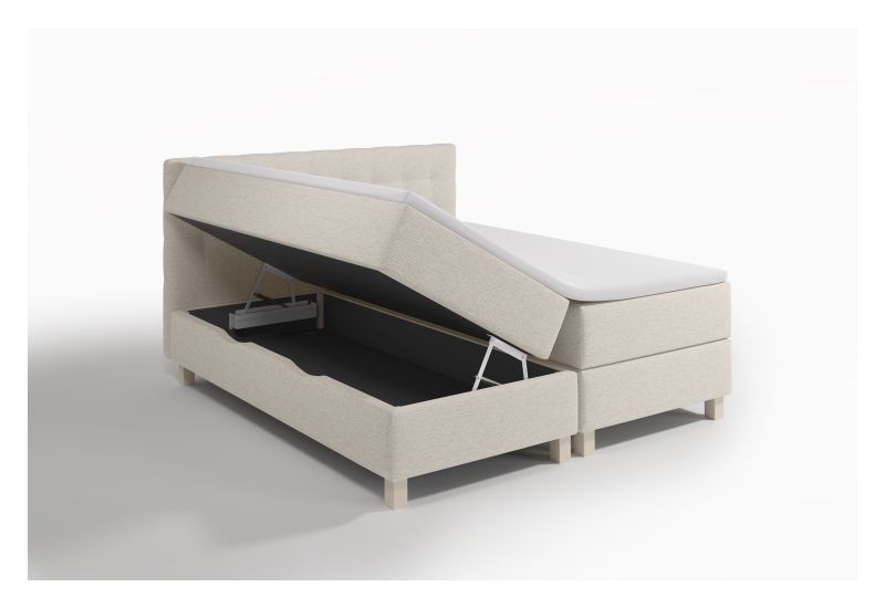 Bezug Romeo 8018 almond milk PG 1, Kopfteil VÄG Oberkante 110cm, Rücken unecht, Bettkasten Öffnung seitlich, BK innen basaltgrau