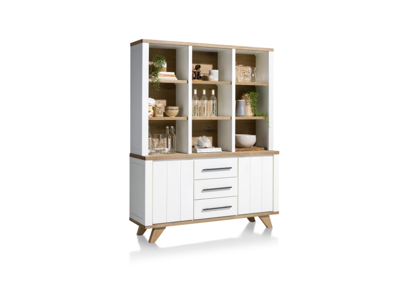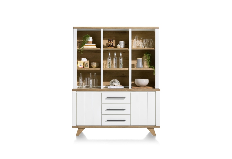 Eiche railway brown, Front weiß, 2 Türen, 3 Schübe, 9 Nischen, 2 Innenschübe