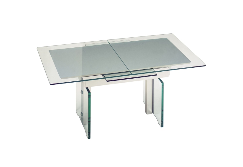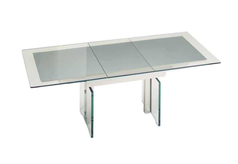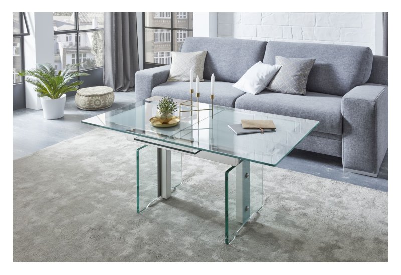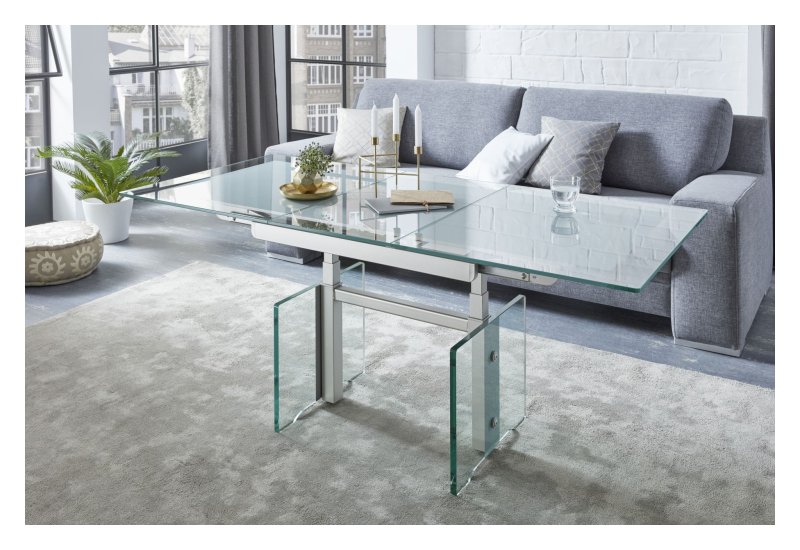 Glasplatte mittig perlsilberfarbig hinterlackiert, Glaswangen, Metallteile perlsiberfarbig, L/B: ca. 125(165)x75cm