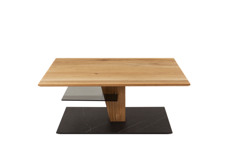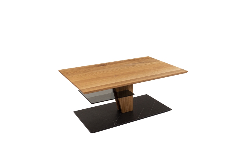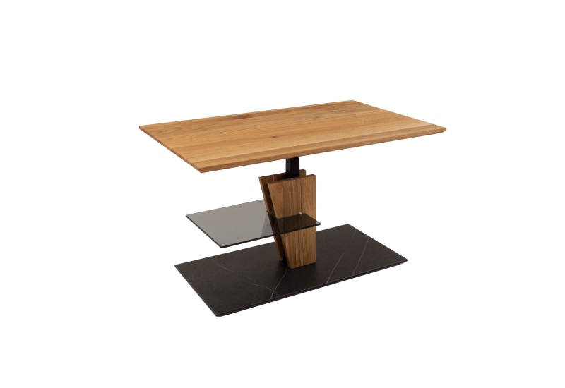 Wildeiche furniert, Bodenplatte HPL-Auflage Marmara Nero, Diagonalverschiebung, Höhe ca. 43-61cm
