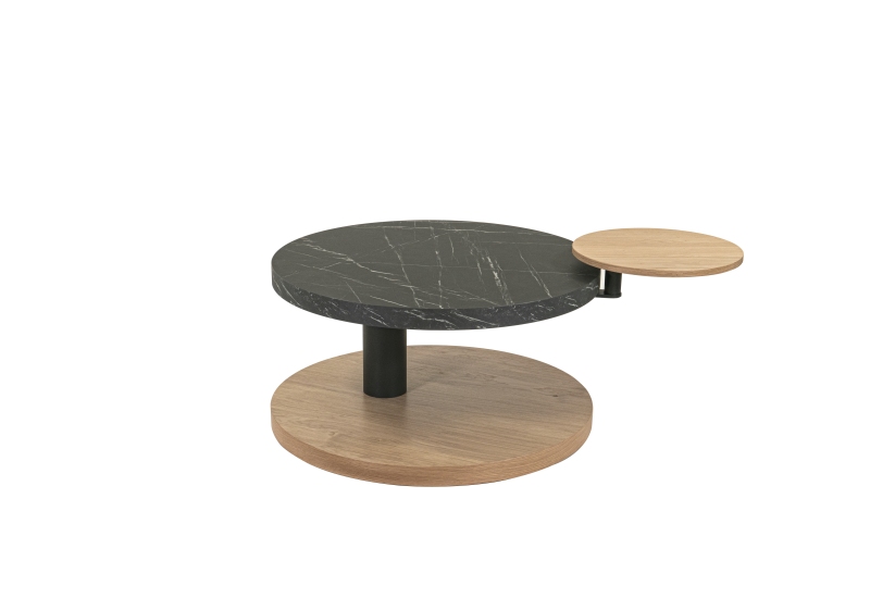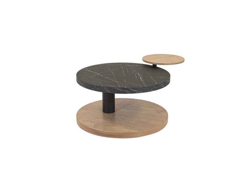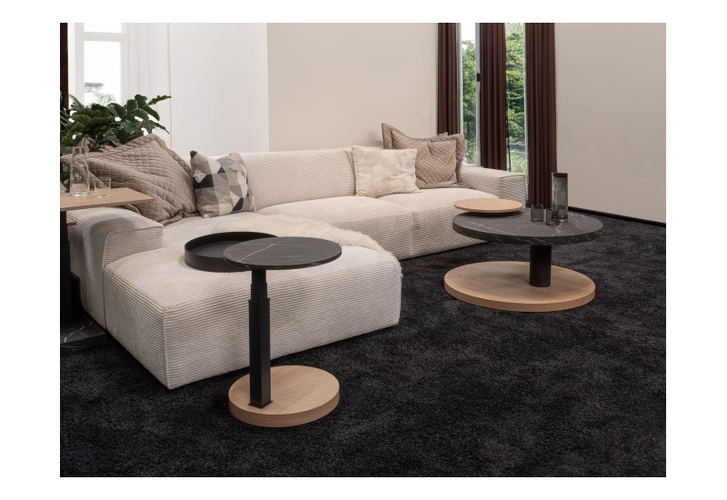 Bodenplatte Wildeiche furniert, Metallteile anthrazit lackiert, Platte HPL Granit schwarz