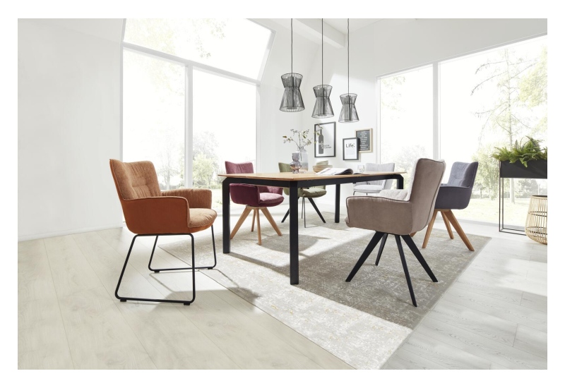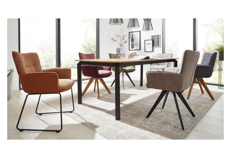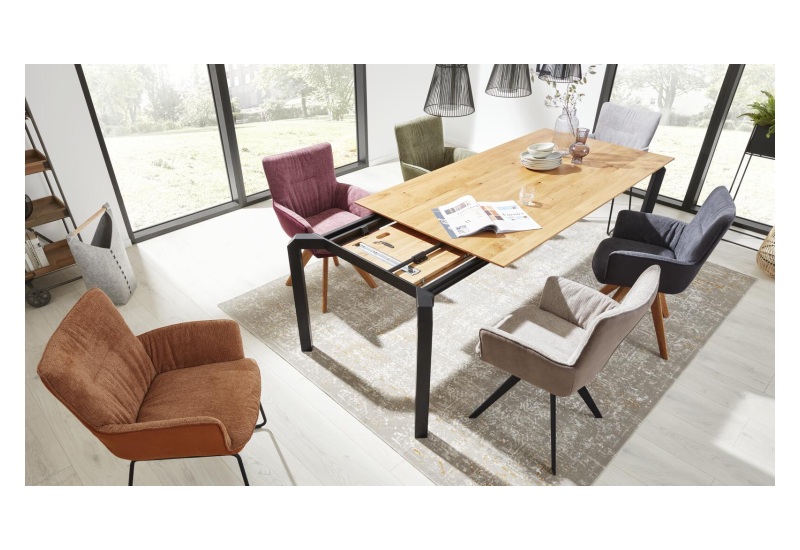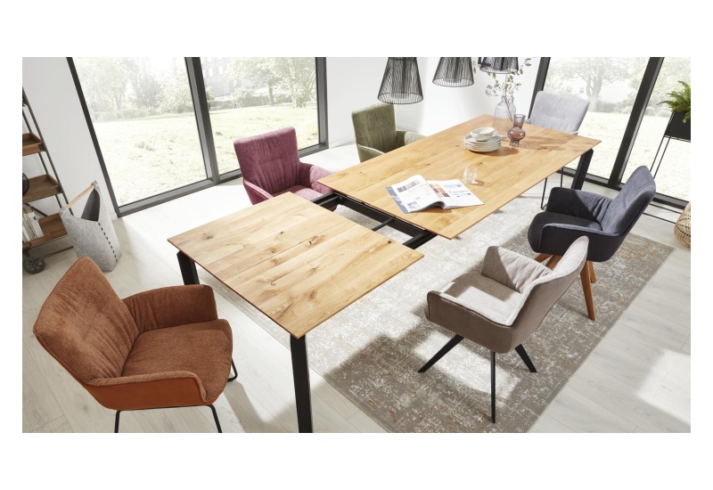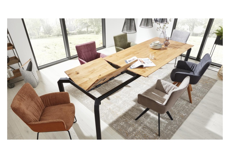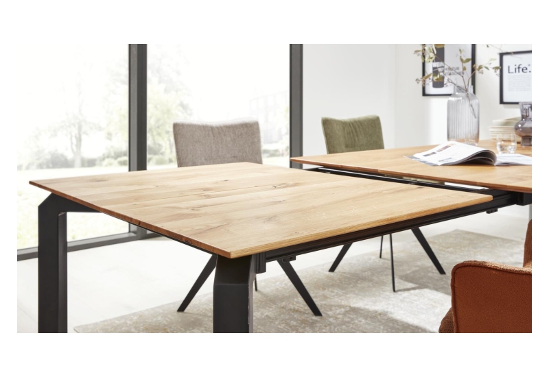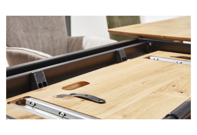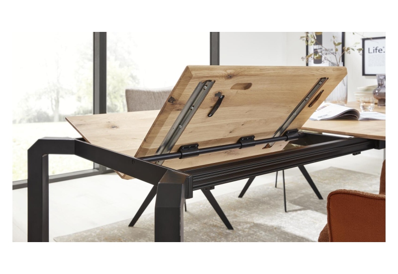 Platte Charakter-Eiche massiv, 4-Fuß-Gestell Metall schwarz, Frontslide mit Klappeinlage á 80cm