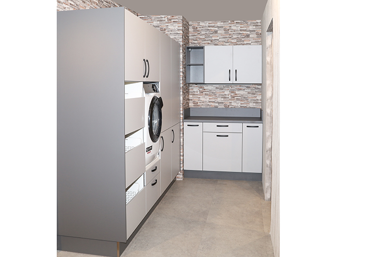 Melaminharz, Hellgrau 039, Korpus Anthrazit, Arbeitsplatte P43 Anthrazit Steinstruktur