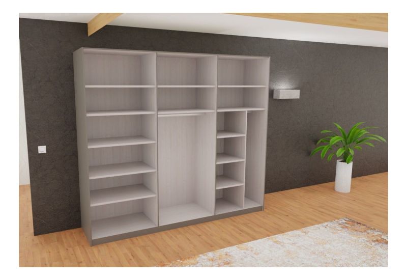 Front Glas Havanna, mit 3 Feldern, Korpus Havanna-Dekor, Griffleisten Schieferfbg, inkl. Wäschebodeneinsatz, 3er-Set Einlegeböden