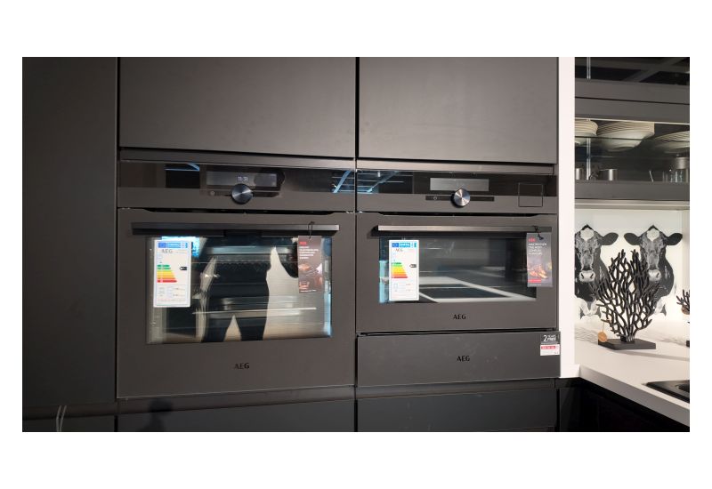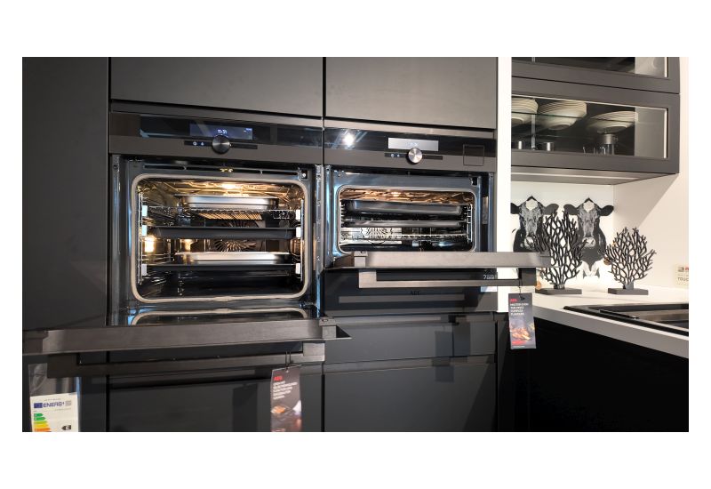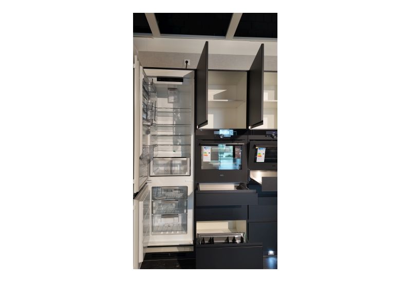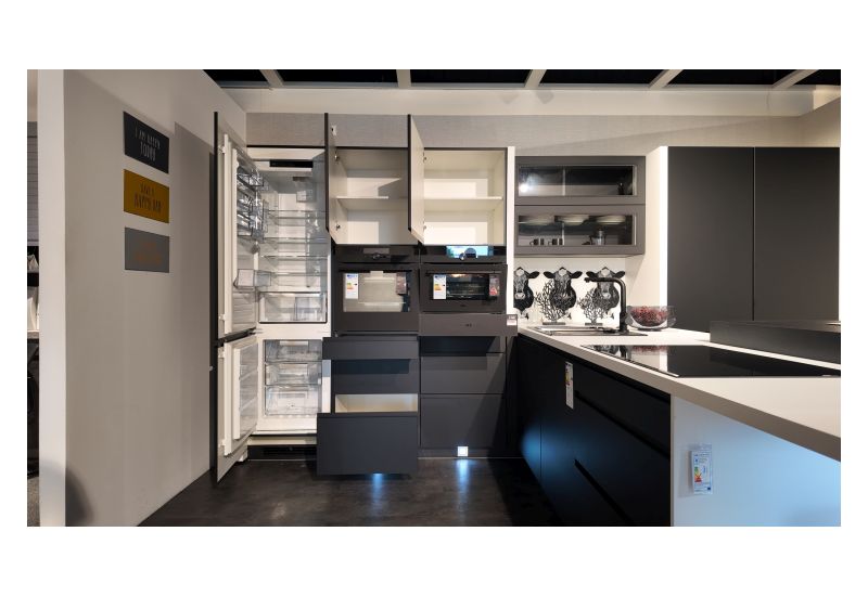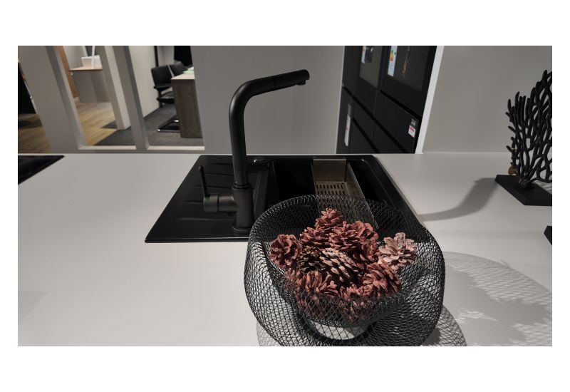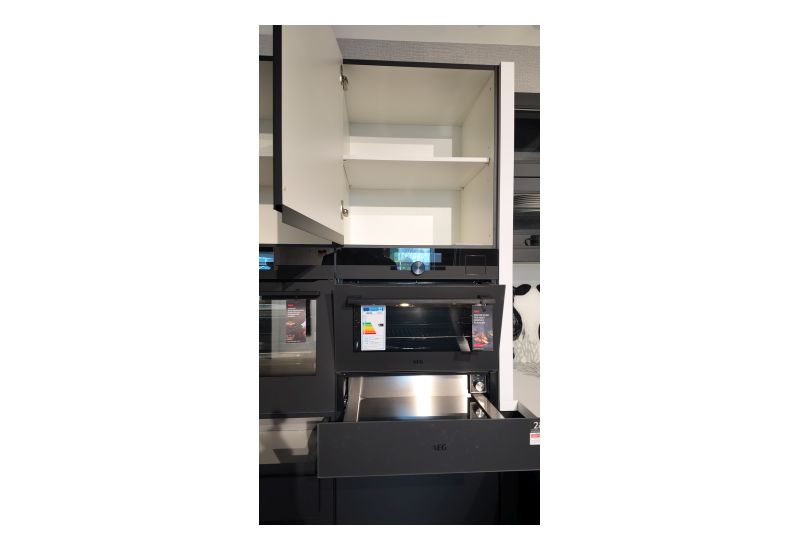 Front 340 Lacklaminat schwarz, Griff 240 schwarz elox., Korpus 127 schwarz u. Sockel