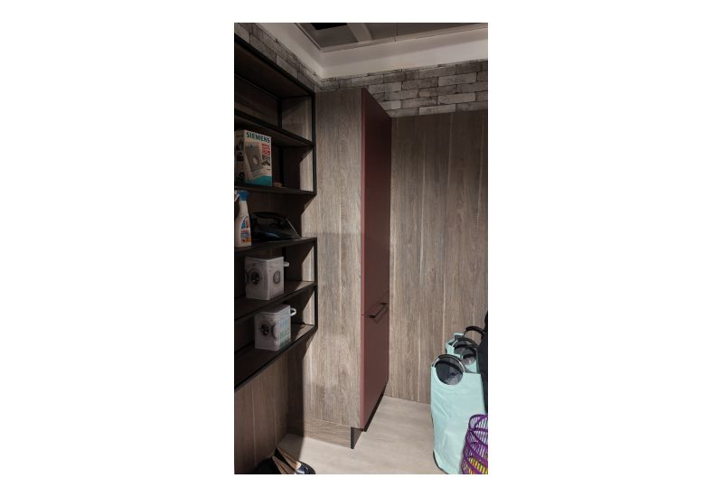 Front: 48H Melaminharz,Hennarot, Griff: 850 schwarz Metall, Farbe Schubkästen Anthrazit