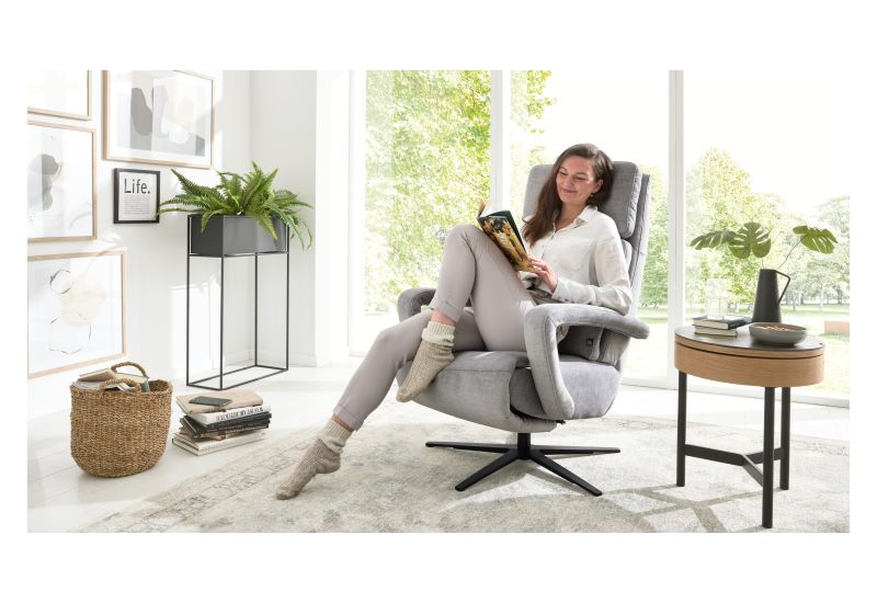 Stoff Kentucky antracite 2590 SG 3, Sternfuß Orion schwarz Variante A, 360 Grad drehbar mit verstellbarer Rückenlehne