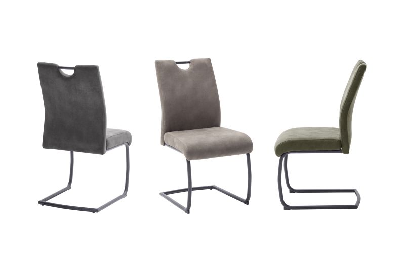Bezug Antiklook olive, Schwinggestell Rundrohr schwarz matt, max. 150kg, mit Griffloch