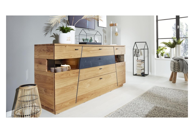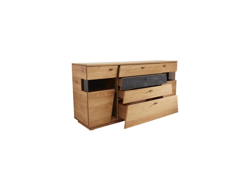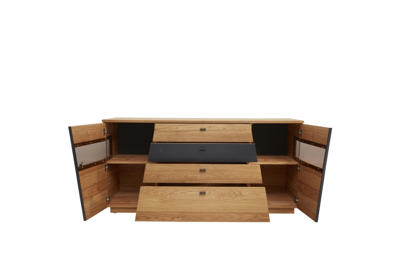 HPL Oak natural Vintage, 4 Türen, 1 Lade und 1 Glastür mit, LED-Beleuchtung