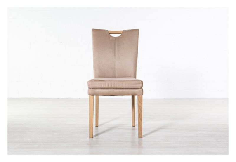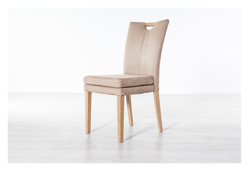 Microfaser Nirvana beige, Gestell Eiche bianco, mit ausgespartem Griff im Rücken