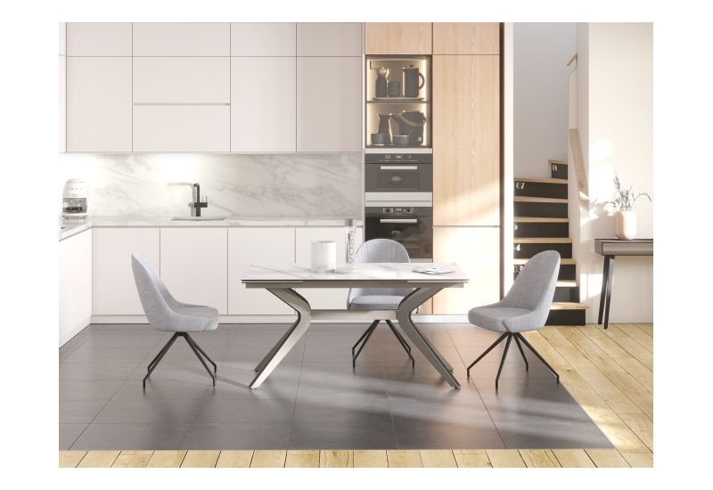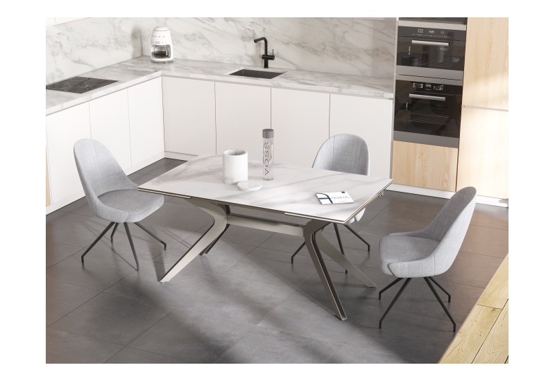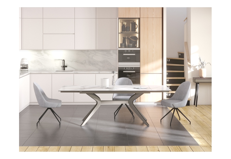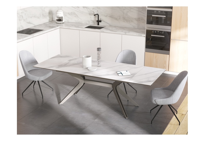 Platte Keramik Marmoroptik matt,, Stahlgestell taupe-grau lackiert,, 2 intergrierte Auszüge á 40cm