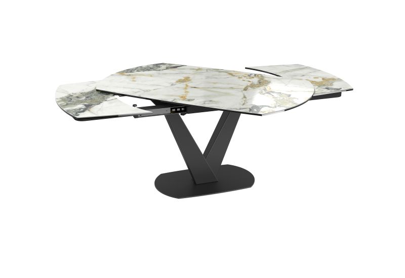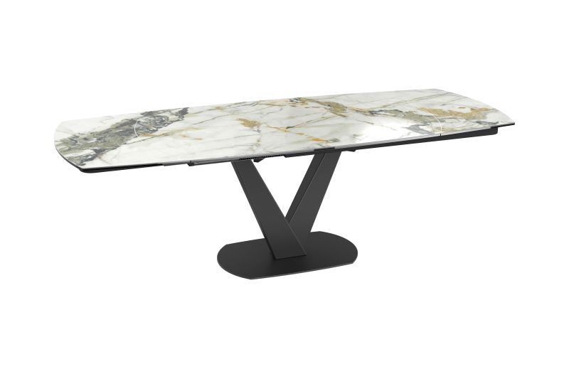 Platte Keramik Marmoroptik Doro glänzend, Stahlgestell schwarz lackiert, auf 240cm ausdrehbar