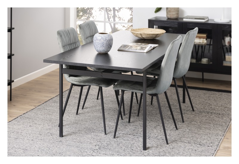 Esche schwarz Melamin,, Metallbeine matt schwarz,