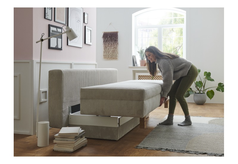 Bezug 55-6576 Cord natur,, Variante A, Sitz Federkern, Liegefläche ca. 150x200cm