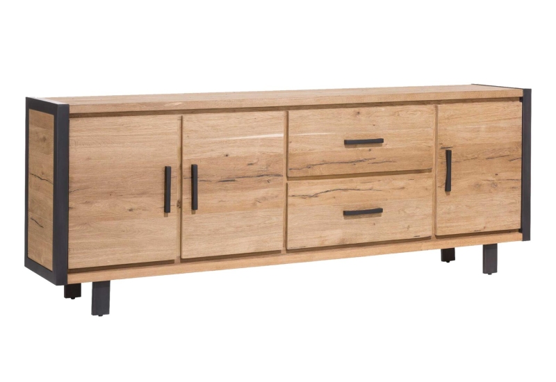 Eiche furniert Fischgrätmuster,, Füße schwarz, 3 Türen B/H/T: ca. 150x71x40cm